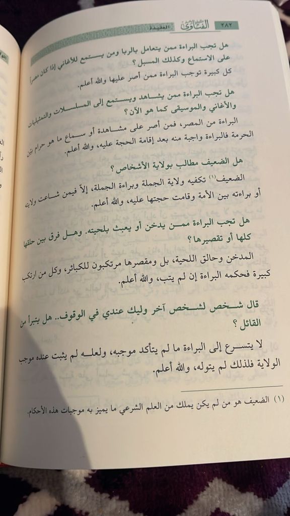 The above image is the Questions and Answers section of the book from Shaykh Ahmad Al Khalili (r) for anyone whoever is partaking in and doing clear forbidden things that person is in bara’ah with us.