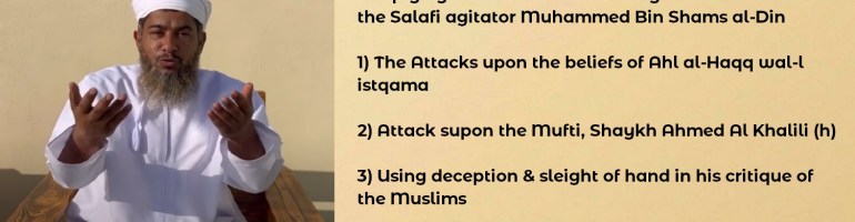 Responding to the claim of the Salafi agitator Ibn Shams al-Din about his claims against Ahl al-Haqq wa-l istiqama; as well as his claims against the Mufti of Oman and imminent scholar, Shaykh Ahmed Al Khalili (h)-May Allah bless him and continue to bless us by him.
