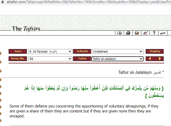 “Some of them defame you concerning the apportioning of voluntary alms-giving; if they are given a share of them they are content but if they are given none then they are enraged.”