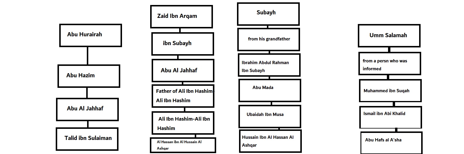 Zaid Ibn Arqam -1) Muslim ibn Subayh—Abu Al Jahhaf-2; father of 3 Ali Ibn Hashim—Ali Ibn Hashim.