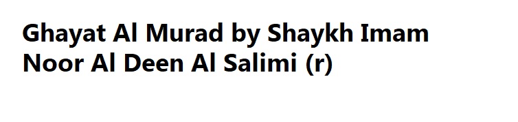 We present to you: Ghayat Al Murad by Shaykh Imam Noor Al Deen Al Salimi (r)