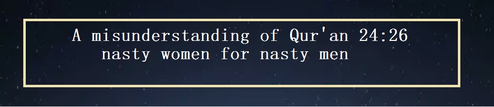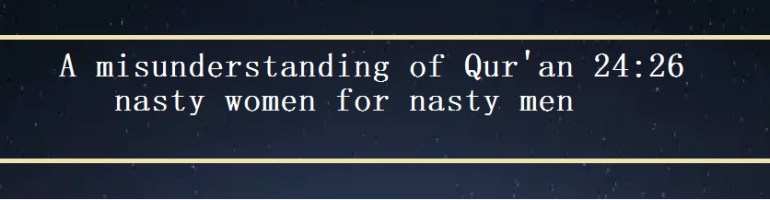 “Nasty women are for nasty men, and nasty men are for nasty women. And virtuous women are for virtuous men, and virtuous men are for virtuous women. The virtuous are innocent of what the wicked say. They will have forgiveness and an honourable provision.” (Qur’an 24:26)
