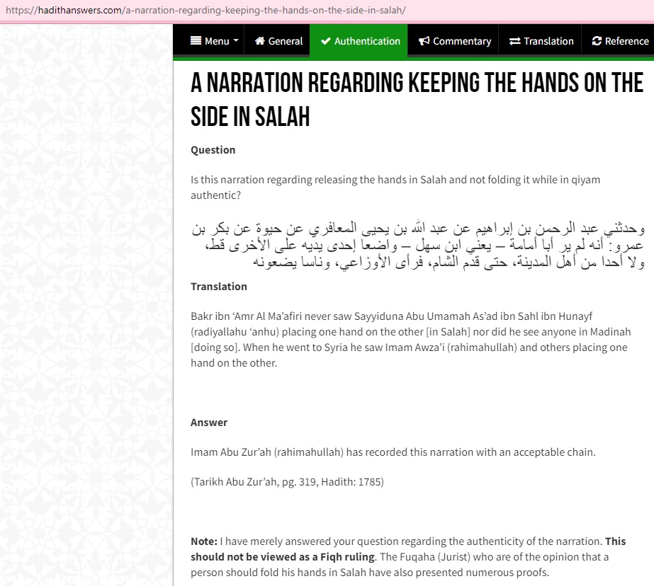 So the pedigree, the start of this practice of tying and folding the hands in prayer, started in Sham, where the Umayyads country was.