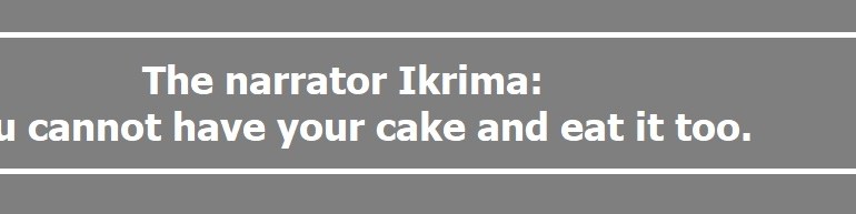 The narrator Ikrima: You cannot have your cake and eat it too.