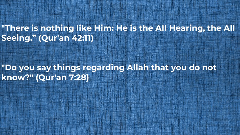 that Allah is All Knowing, All Powerful and Perfect, in fact HIS BOOK states: that to ascribe such names and attributes to God is shirk and anthropomorphism.”