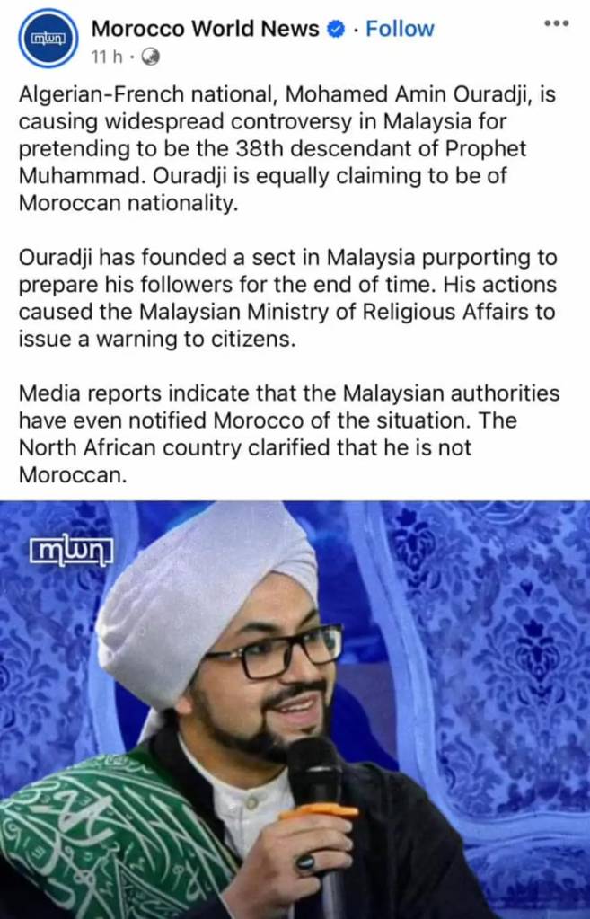 For more information: (https://www.moroccoworldnews.com/2024/02/361033/malaysia-algerian-claims-he-is-moroccan-descendant-of-the-prophet)