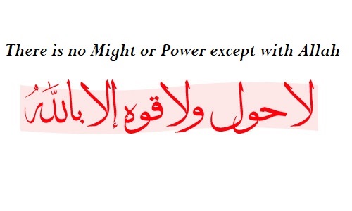 What is amusing is the following: The statement in Arabic that you see above: “There is no Might or Power except with Allah.” The transliteration from Arabic would be: La hawla wa la quwwata illa Billah.