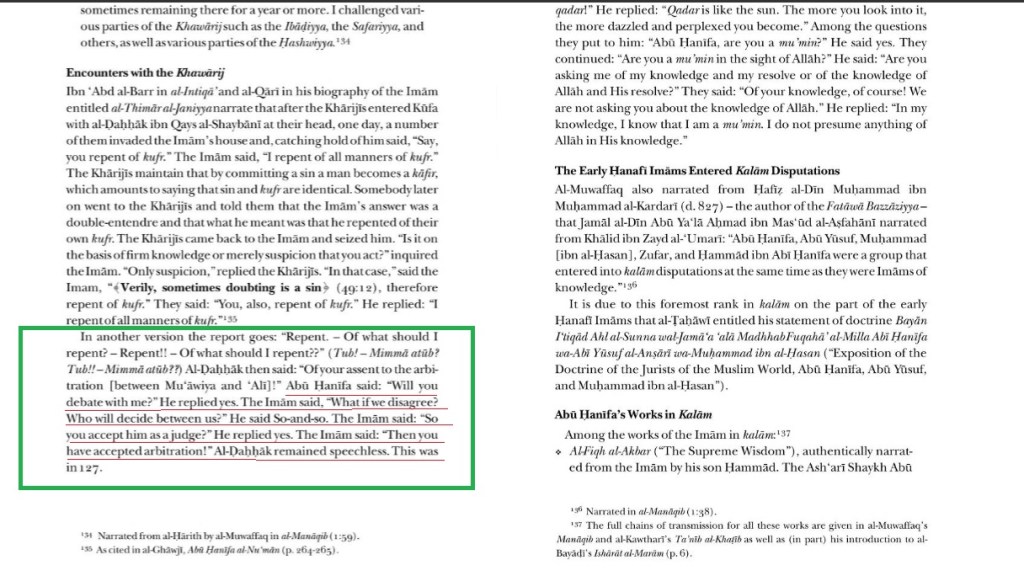“And what indicates that the Companions did not consider the Khawarij to be disbelievers is that they used to pray behind them. Abdullah ibn Umar -RA- and others[companions] used to pray behind Najda al-Haruri. They also used to engage in debates with them, as the Muslim would debate with a Muslim, as Abdullah ibn Abbas debated with Najda al-Haruri when he was sent to him to ask about certain issues, and his hadith is in Al-Bukhari. Likewise, Nafi’ ibn Al-Azraq debated on famous issues. Nafi’ used to debate on matters in the Quran, as any two Muslims would debate among themselves”