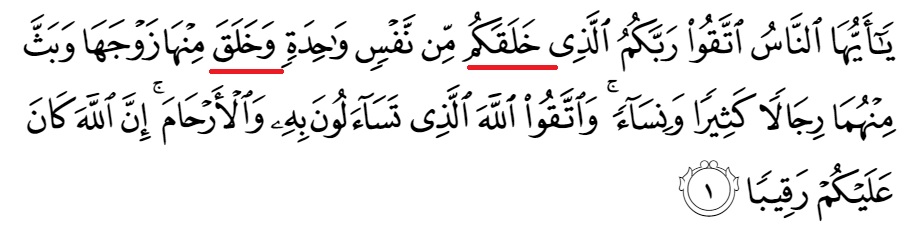 “Oh, mankind! Fear your Lord, who created you from a single person and created, out of him, his wife.” (Qur’an 4:1)